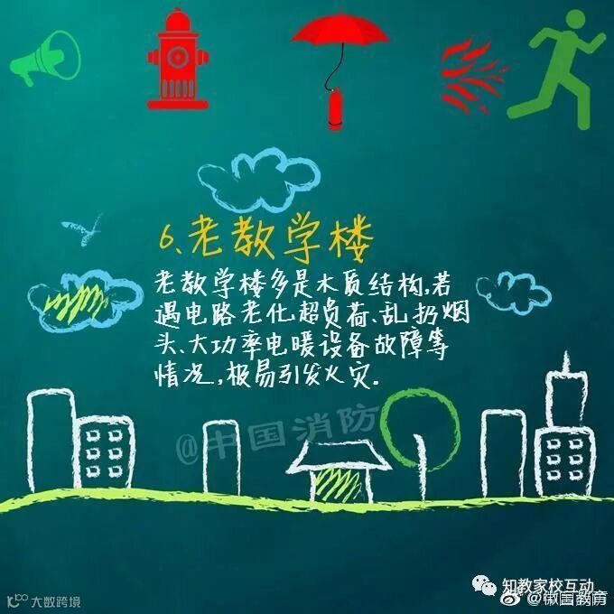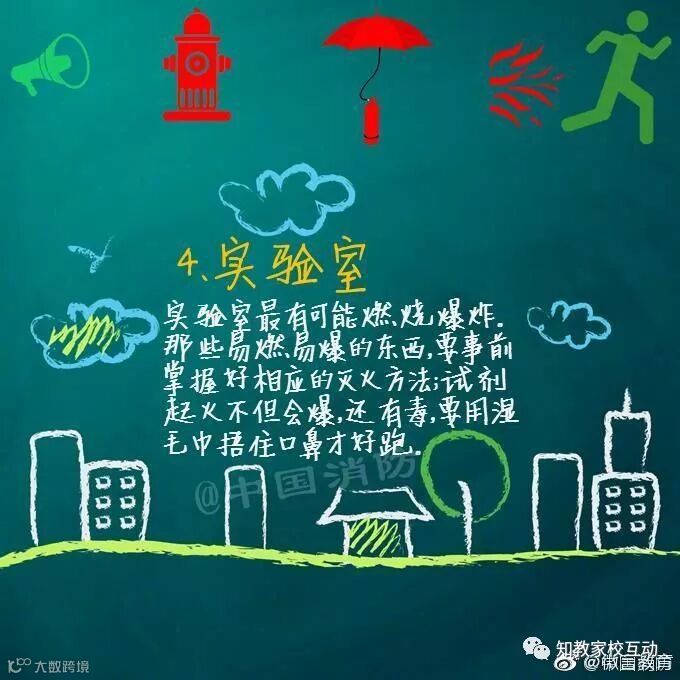 知教家校互动学校人员密集,一旦发生火灾后果严重,集体宿舍、食堂、实验室、图书馆等是重点防火部位,老师同学们都要提高消防意识,注意防火安全。