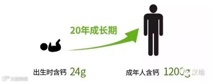 钙是人体含量最多的矿物质元素占人体总重量的1.5%~2.0%。人在出生后20年的成长期,平均每天需要储存约200mg的钙。
