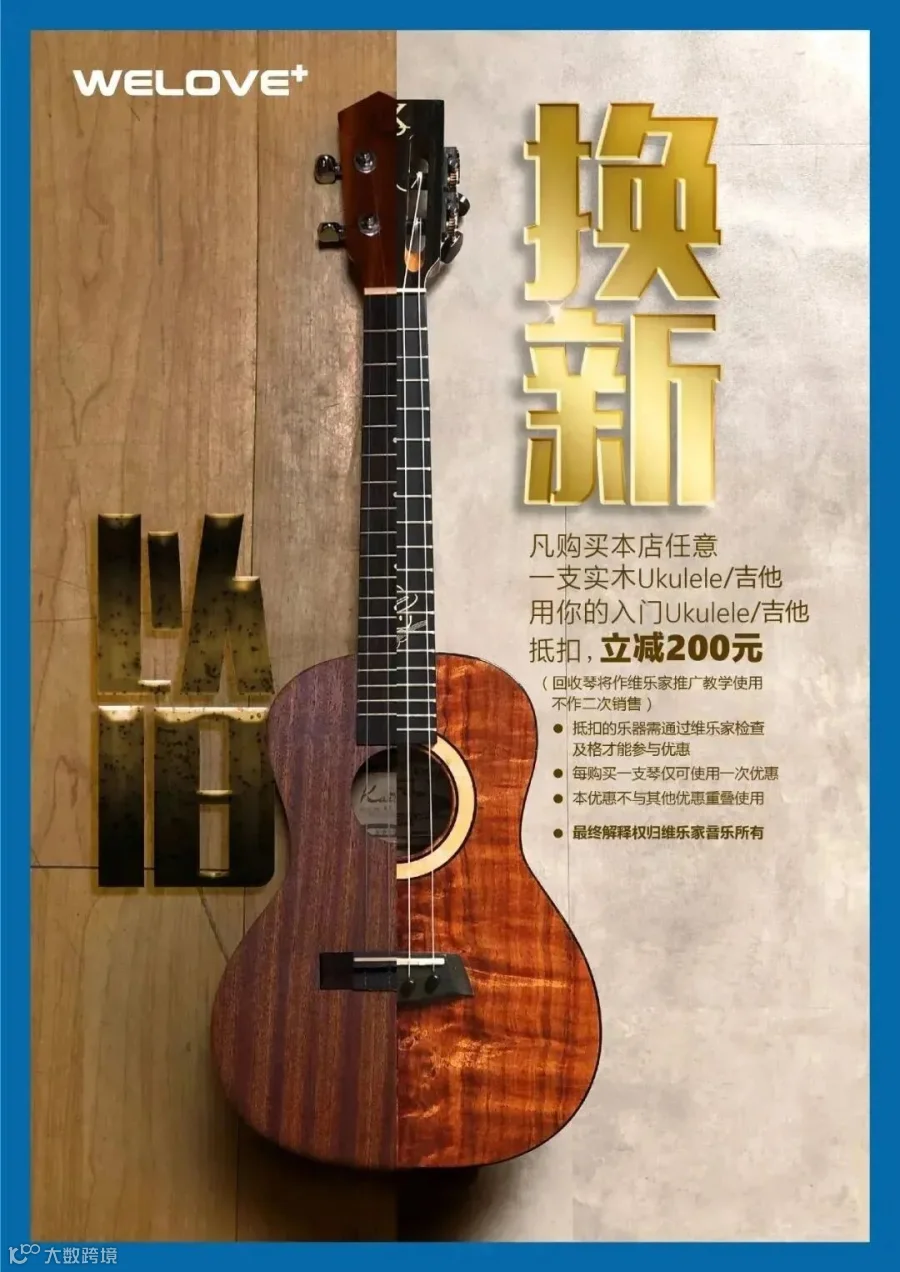 用您的入门Ukulele/吉他 抵扣200元