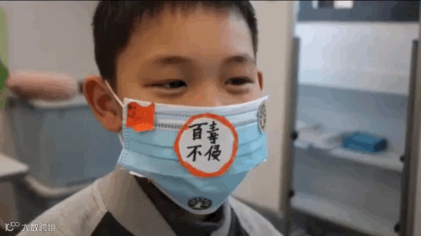 小朋友戴“一米帽”上课