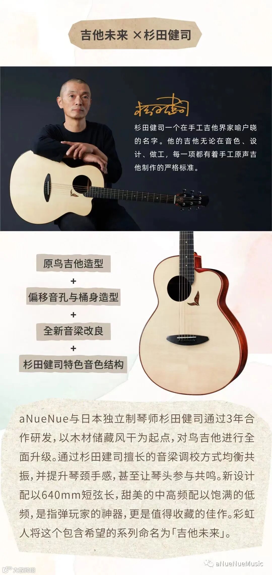 实际他们用的吉他,是来自于全球热卖人气品牌,彩虹人aNueNue推出的经典桶型设计,灵感源于知更鸟的鸟吉他。有别于常见的传统桶身,彩虹人以独家设计的鸟桶身闻名,从鸟吉他到鸟乌克,外型和偏音孔设计都具有极高的辨识度。