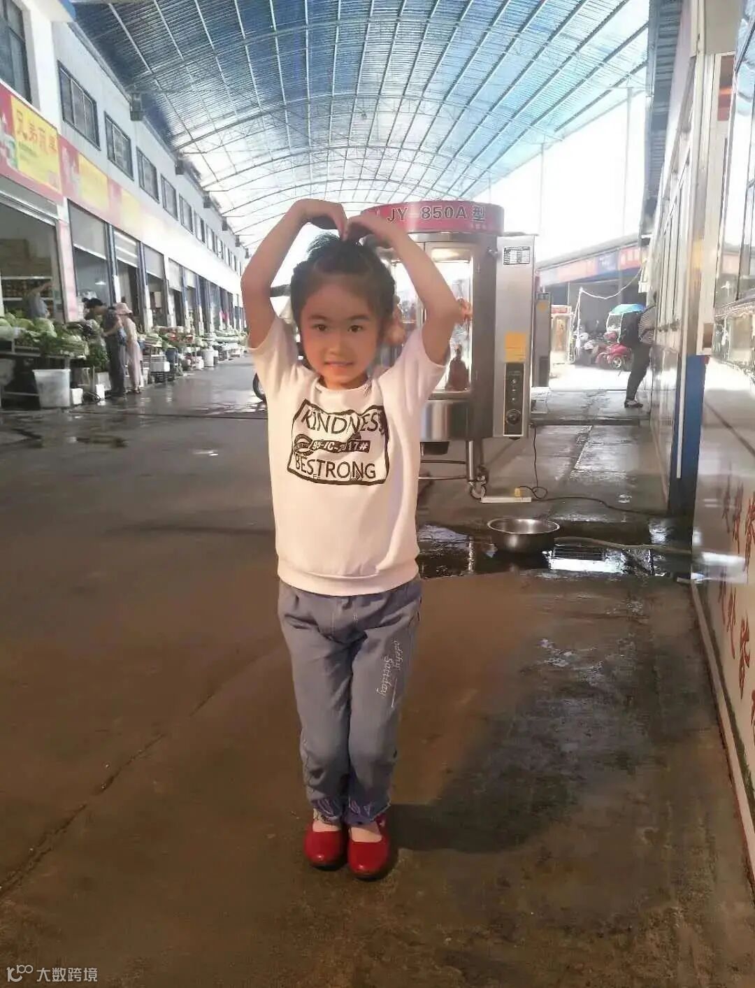 在卤菜店附近尽情地玩耍