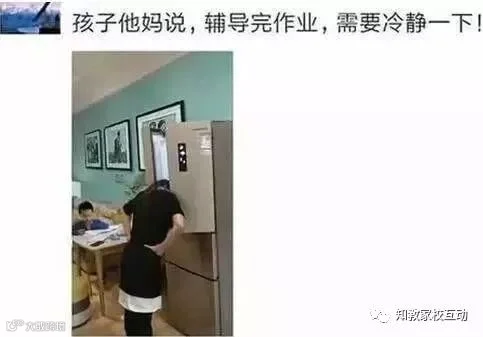一位妈妈在辅导完孩子写作业后,直接将头放在了冰箱里,声称需要冷静一下。