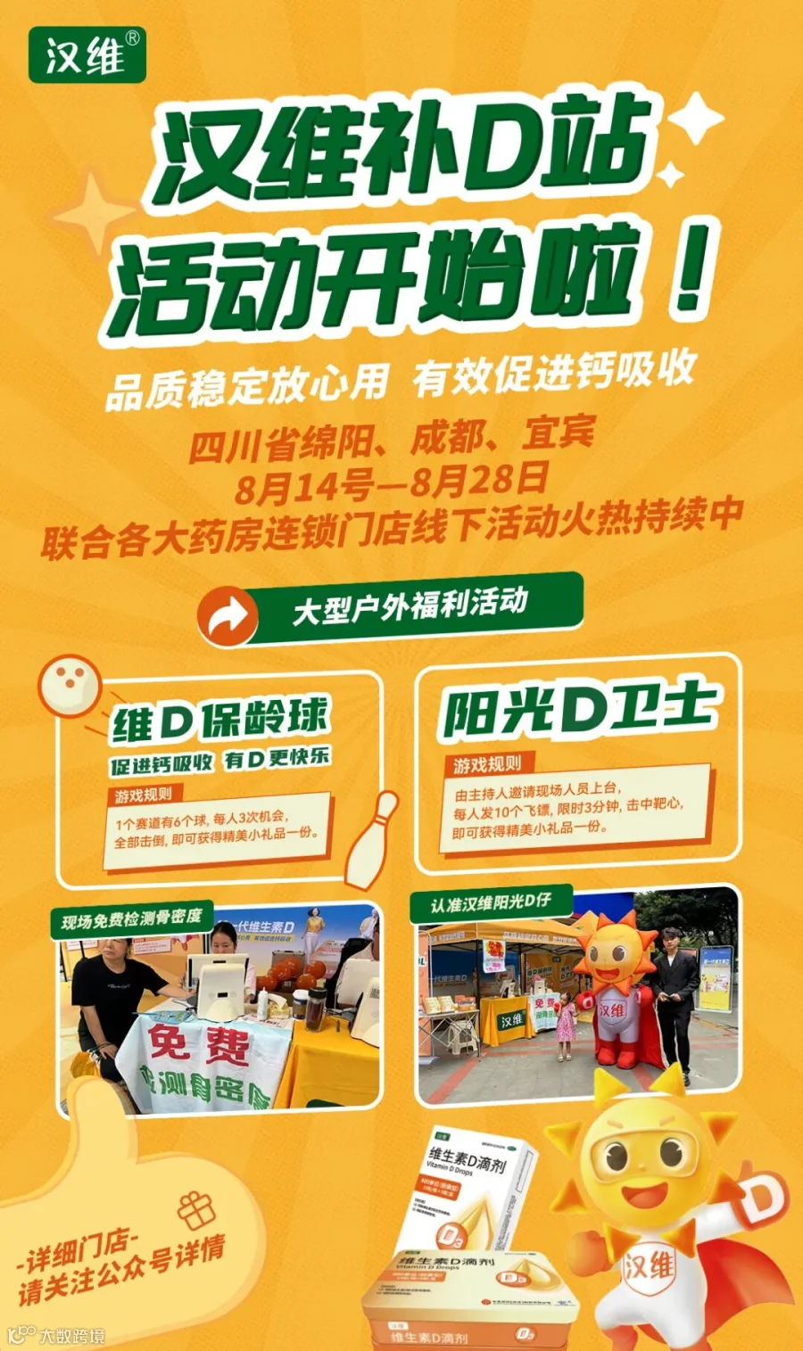 总之,「汉维·阳光补D站」不仅展示了“汉维®新一代维生素D”的独特优势,更通过多元化的推广形式和广泛的市场覆盖,彰显了汉维品牌在维钙营养领域的领导地位。