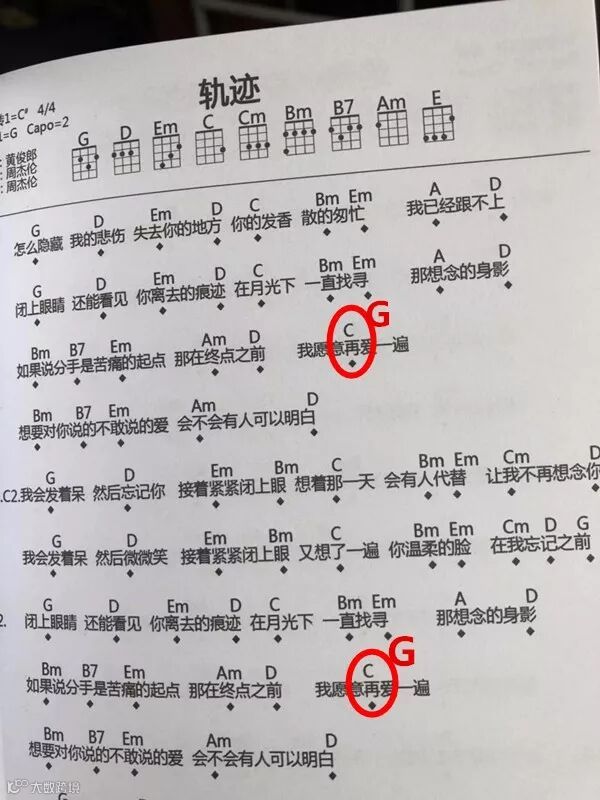 歌词“再”上面的 C和弦