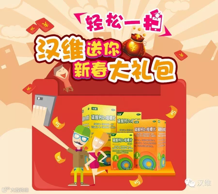 拍照:手持汉维钙片(20片或60片均可)在药店内摆出最能展示你点赞的pose拍照
