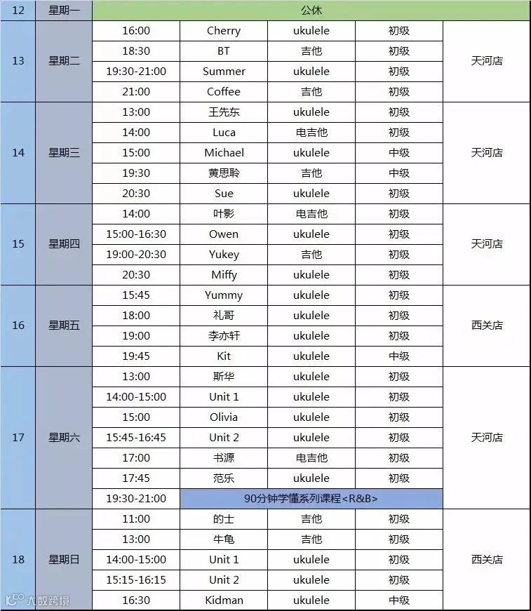 维乐家音乐VIP课程表