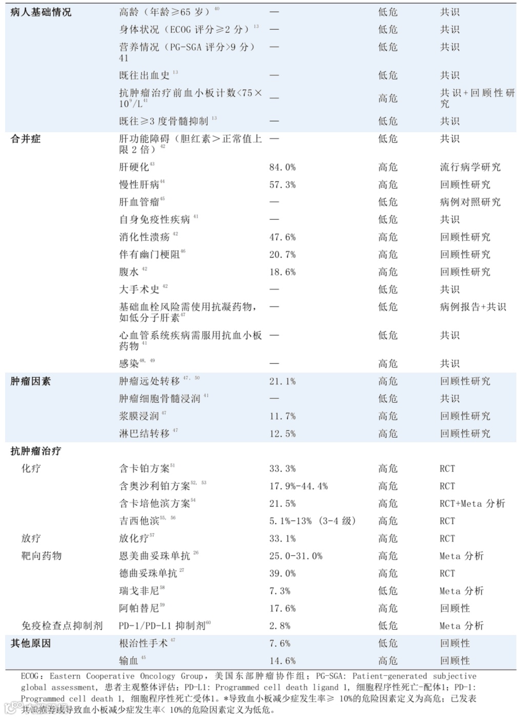 图1. 血小板减少的危险因素