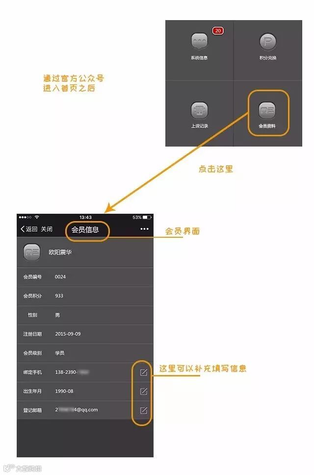 >>会员可以在界面中自行补充生日日期、邮箱等信息;