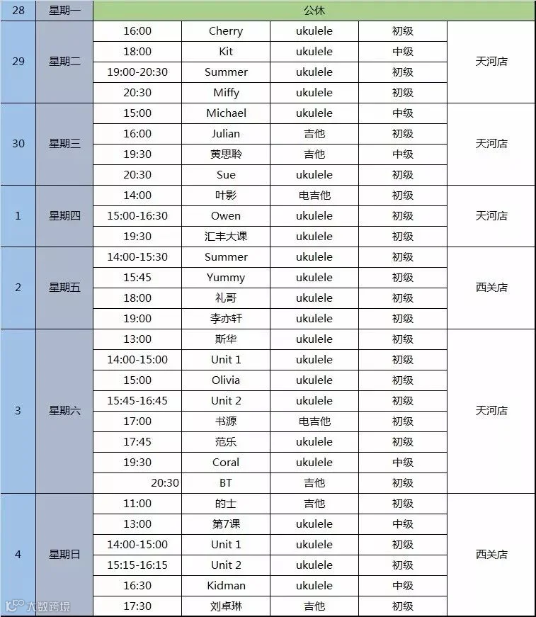 导读:维乐家音乐VIP课程表
