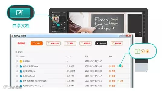 点击共享文档按钮,上传所需的答题文档,点击“分享”到大屏幕。