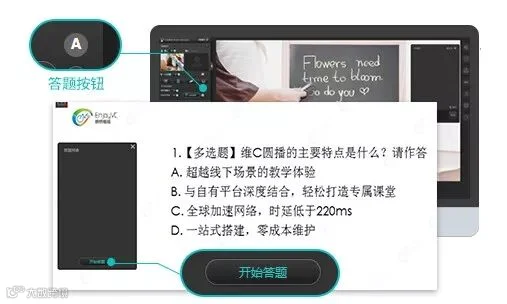 使用前温馨提示:答题功能与白板、文档、语音、音频或者视频结合使用效果更佳哦!