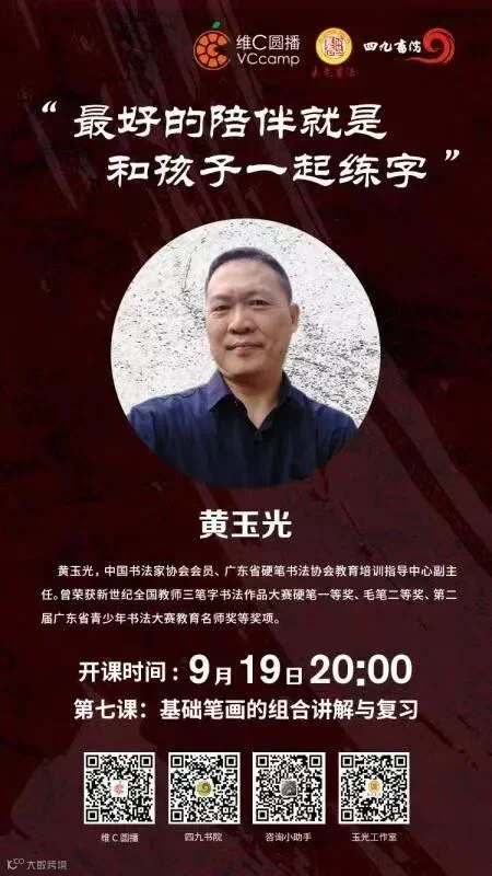 即可线上直播,一起与黄老师学习写字的乐趣吧!