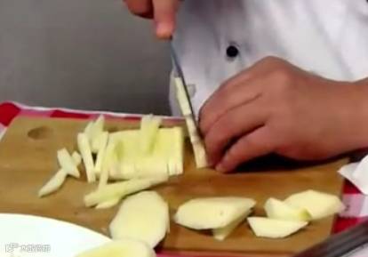 Step 2:在锅中放入红糖、黄油加热熔化,放入切好的芒果条,加入少量干白葡萄酒、盐、胡椒粉、豆蔻粉一起翻炒直至变软即可出锅。