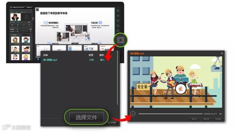 维C圆播支持播放音乐及视频,只要事先上传在课件网盘里,就可以随时调用出来上课咯!
