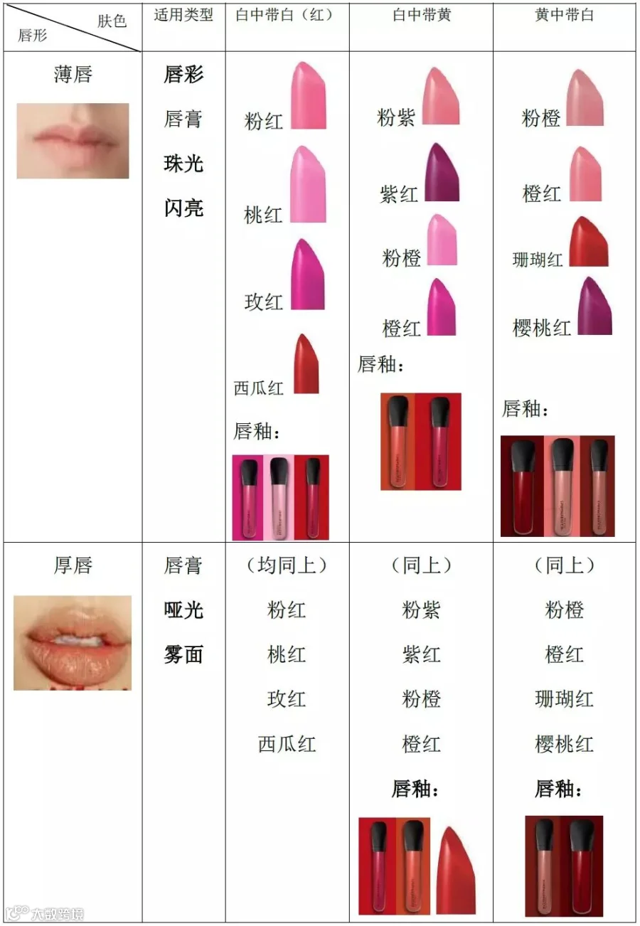 根据自己的唇色和唇形,即可在对应范围内,随心搭配各种口红,保证怎么搭都不出错!