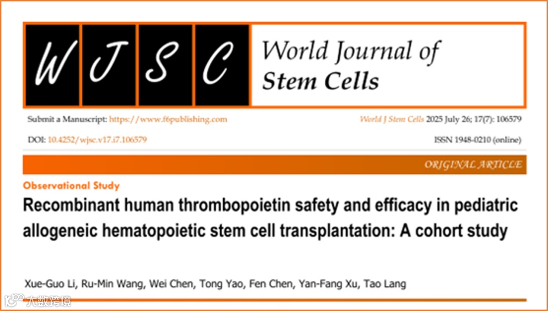 译名:重组人血小板生成素在儿童异基因造血干细胞移植中的安全性和有效性:一项队列研究