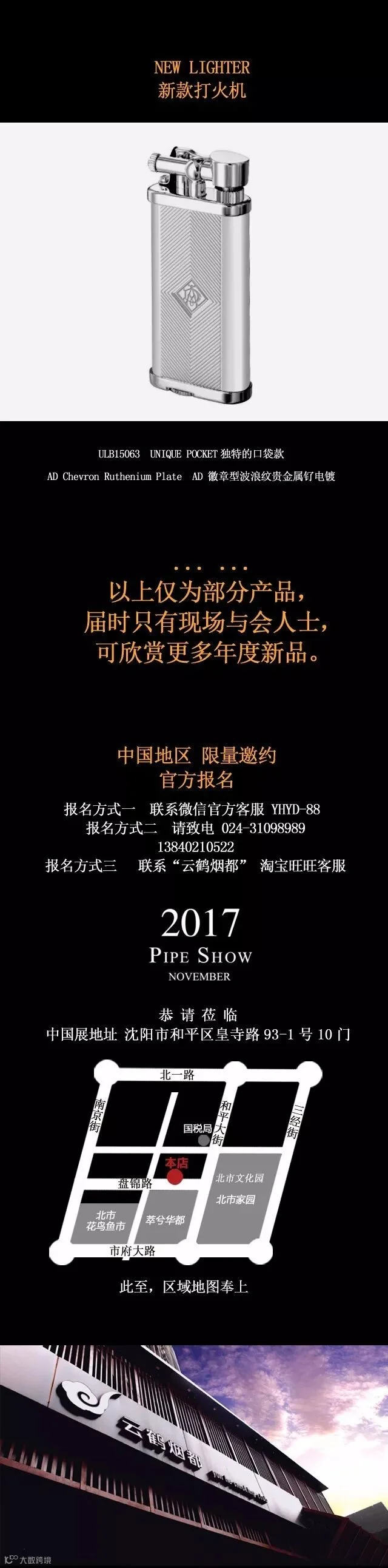 导读:2017新品发布会暨登喜路年度活动日,中国·沈阳,11月12日(周日) 14:30 云鹤烟都 恭迎