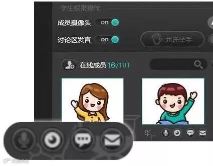 2、打开部分学员的音频:在主持模式下,在学员视频区,选取部分学员,将他们的音频开关打开