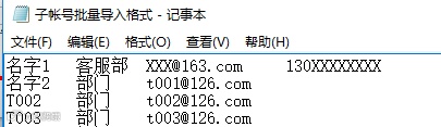 通讯录导入后,邮箱或手机均可以做为子帐号登录