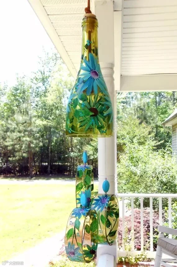 酒瓶仅保留瓶口,瓶身切成小圆环,吊在家里当风铃。