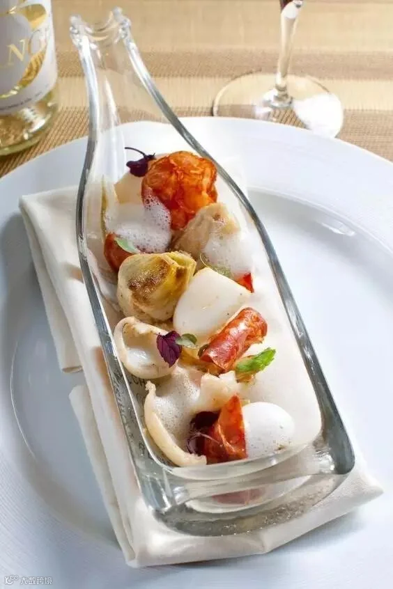 心思巧妙的还能把酒瓶子当做菜盘用。凹陷的瓶身还能盛点汤,菜好吃盘子也美。