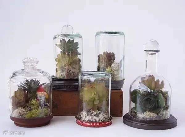 或者将去掉瓶口的瓶身倒扣,形成独一无二的植物世界。