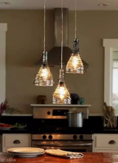 切开瓶子,留下瓶口,挂在吊灯上,比买来的灯罩还好看。