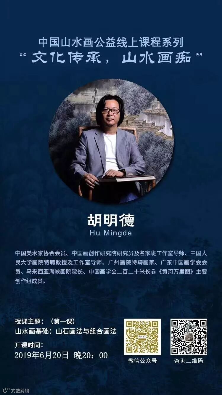 为了传承中国山水画这一古老的传统文化,中国当代著名山水画画家胡明德老师,开展了一系列公益线上山水画教学活动,希望通过朗桥维视·维C圆播平台,能够让更多对山水画感兴趣的人了解到山水画中的情境,意蕴。他的山水画作品风格隽秀,笔墨生动,极具表现力。