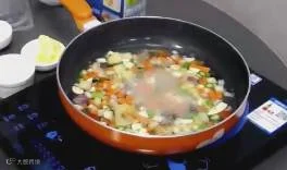 1、全部切碎成粒状,加入锅里焯水片刻