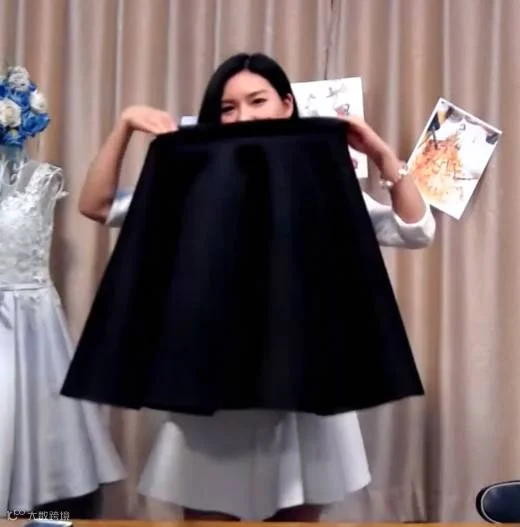 A4:为了节省布料,底裙只需要做成180°裙摆的就可以;外裙是360°的,拉起来呈一个完整的圆形;而180°的裙摆是做成两片需要缝合起来的。