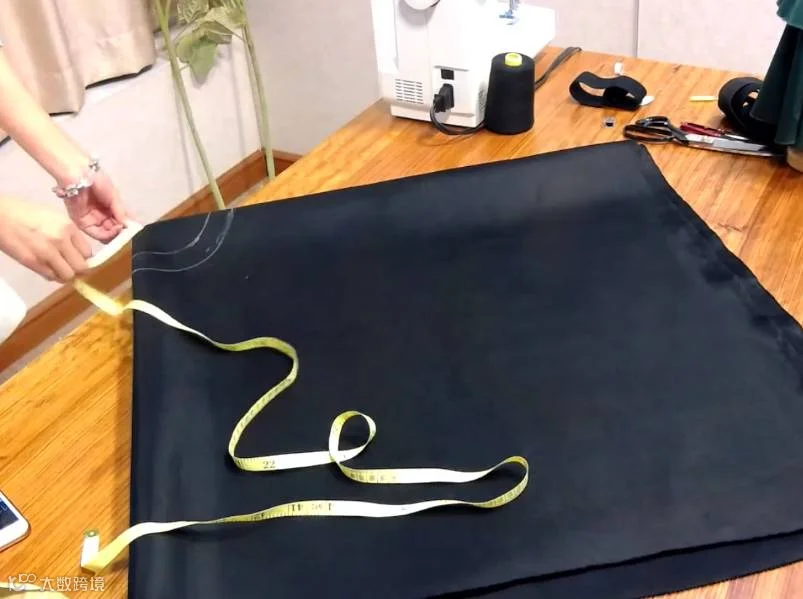 然后用橡皮筋在自己量腰围的位置勒一圈,记得留出缝头的放量哦,将多余的橡皮筋剪掉即可。