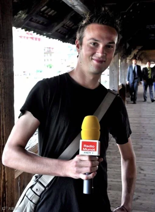 这是瑞士的一名电台记者,苏老师与他畅聊了瑞士花桥到贵州的桥,过程中充分激发了电台记者的兴趣并开展了长时间的对话。