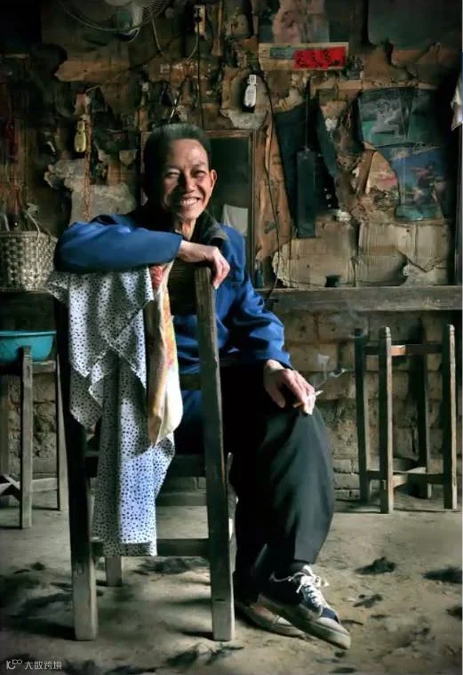 这张照片摄于广西贺州的一家理发店,椅子上坐着的是这家店的第三代传人,尽管家徒四壁,但他的脸上仍充满着笑容,手上夹着一根烟,彰显出对生活的满足感和幸福感。通过语言的沟通,让苏老师还收获了一个如此温情的故事。