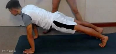 可从斜板式的动作过渡,手臂弯曲,做到类似俯卧撑做到一半停在中间的位置。