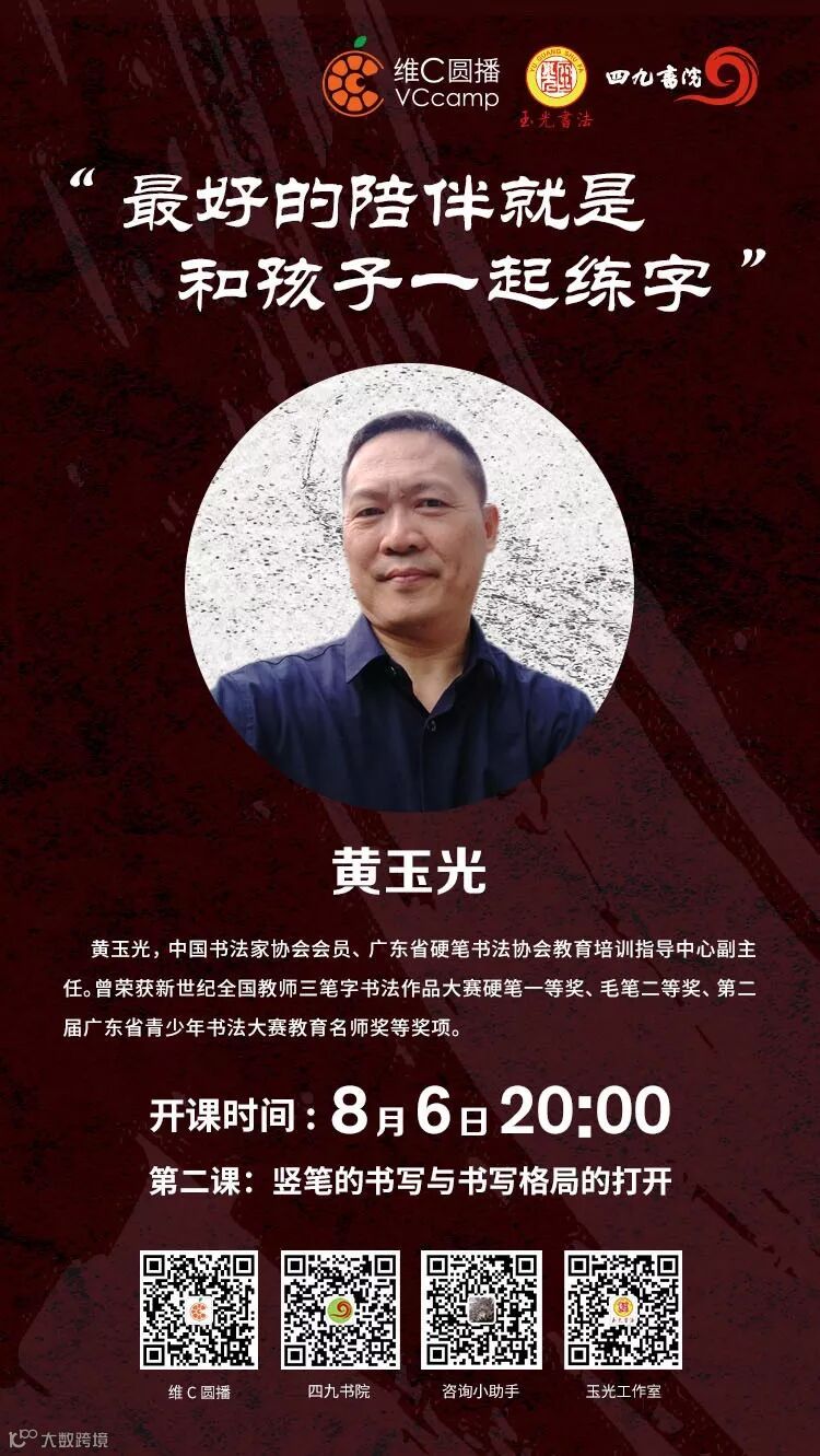 即可线上直播,一起与黄老师学习写字的乐趣吧!