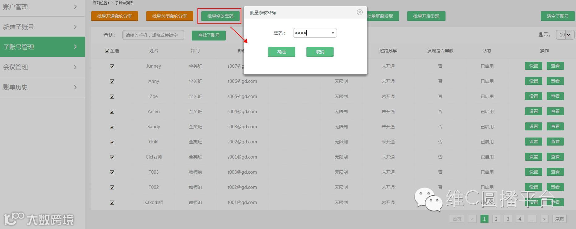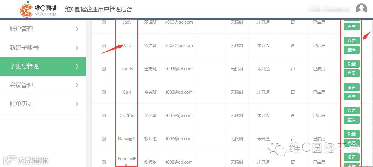 维C圆播还提供企业版的管理功能