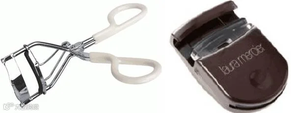 (Jenny老师推荐我们使用这种平口的睫毛夹来夹上睫毛,因为它更符合亚洲人的脸型;同时使用大铁夹来使真假睫毛重合得更好)