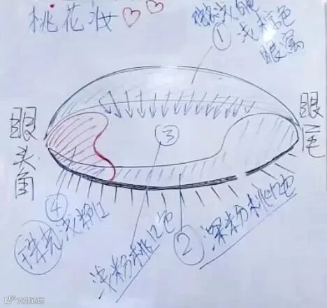 桃花妆,顾名思义就是像桃花一样的粉红色妆容