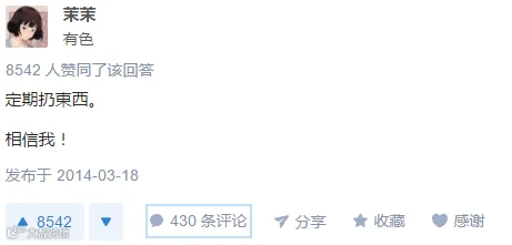 在知乎上有一个问题“做哪些事情可以提升生活品质?”,一个仅有5个字的回答,收获了8542个赞,430条评论,在综合排序时被排在第一条。
