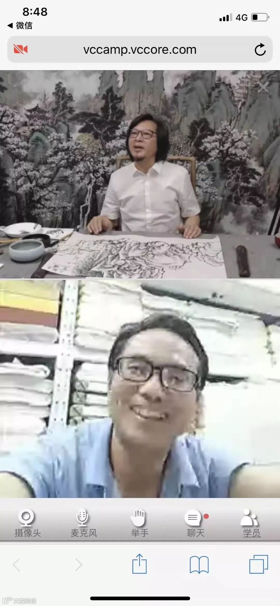 通过两个摄像头的画面呈现,能够仅仅在一个手机的情况下,真正贴近老师,与老师交流,探讨山水画的教学,这种教学方式,独有维C圆播平台。