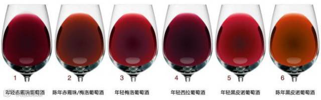 酒液颜色一般为紫红、宝石红、石榴红、砖红色