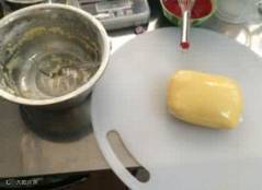 软黄油隔热水融化成液体。