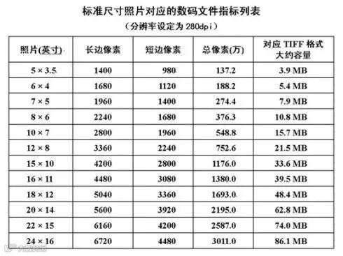 边长(像素数)= 分辨率(像素数/英寸或厘米)× 相片尺寸(英寸或厘米)
