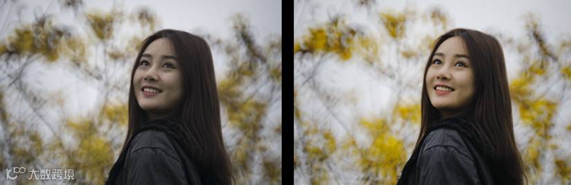 右图整体给人呈现一种明亮的色调,肤色偏黄,可以看出发丝