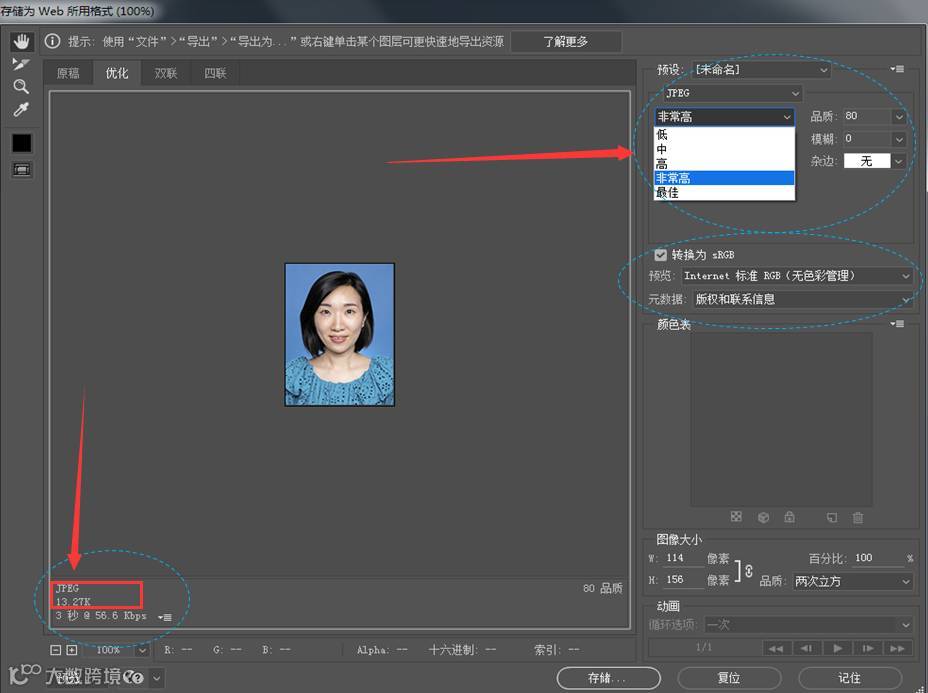 此类格式的最佳图像品质数值选择为12,其次为8,