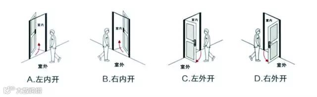 右开门: 你站在门的外侧,当门的固定铰链在右边时,指纹锁定义为右开门,分右内推开门和右外拉开门。