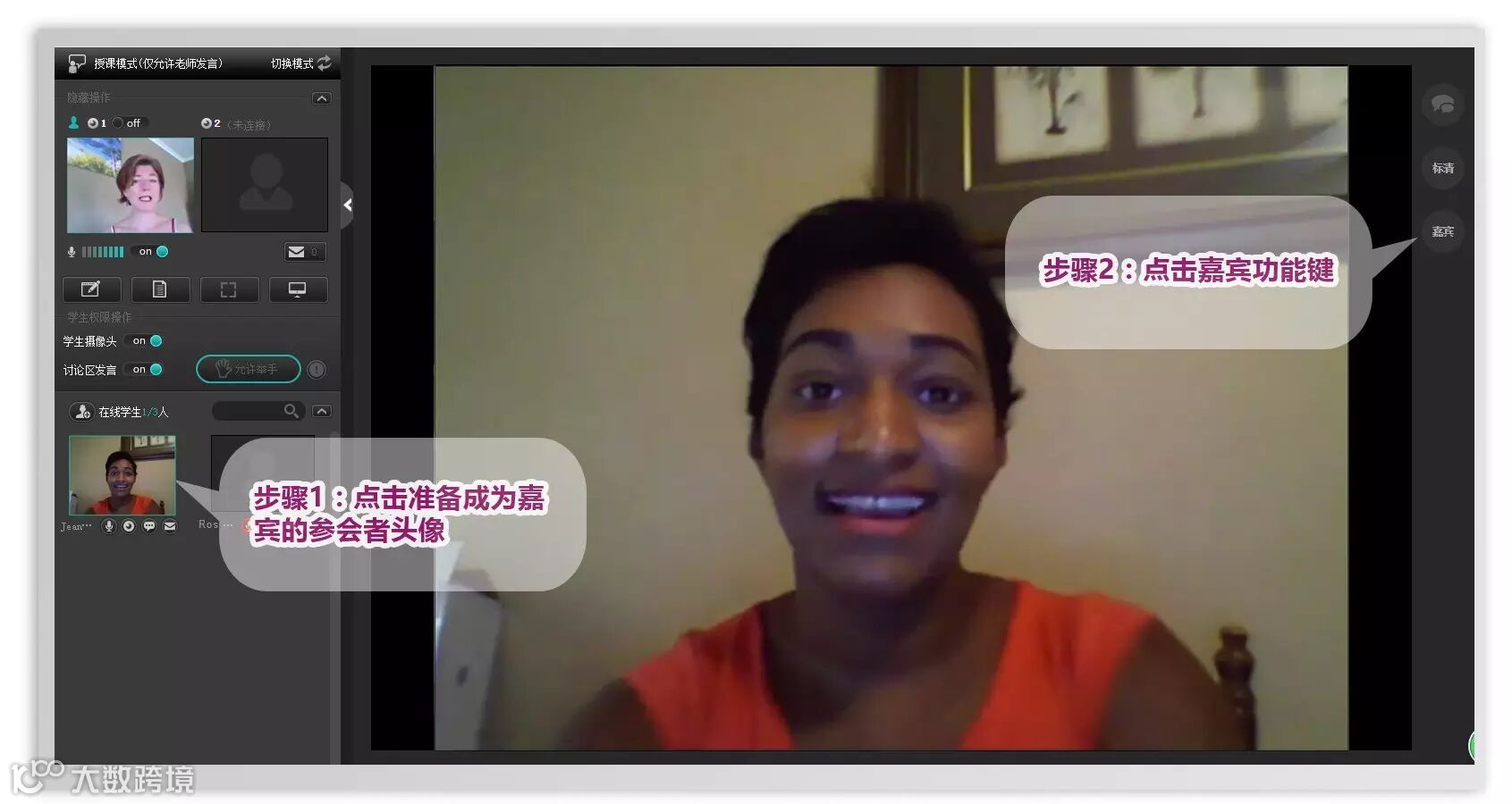❷然后点击右侧嘉宾功能按钮,选定的参会者就会成为嘉宾。