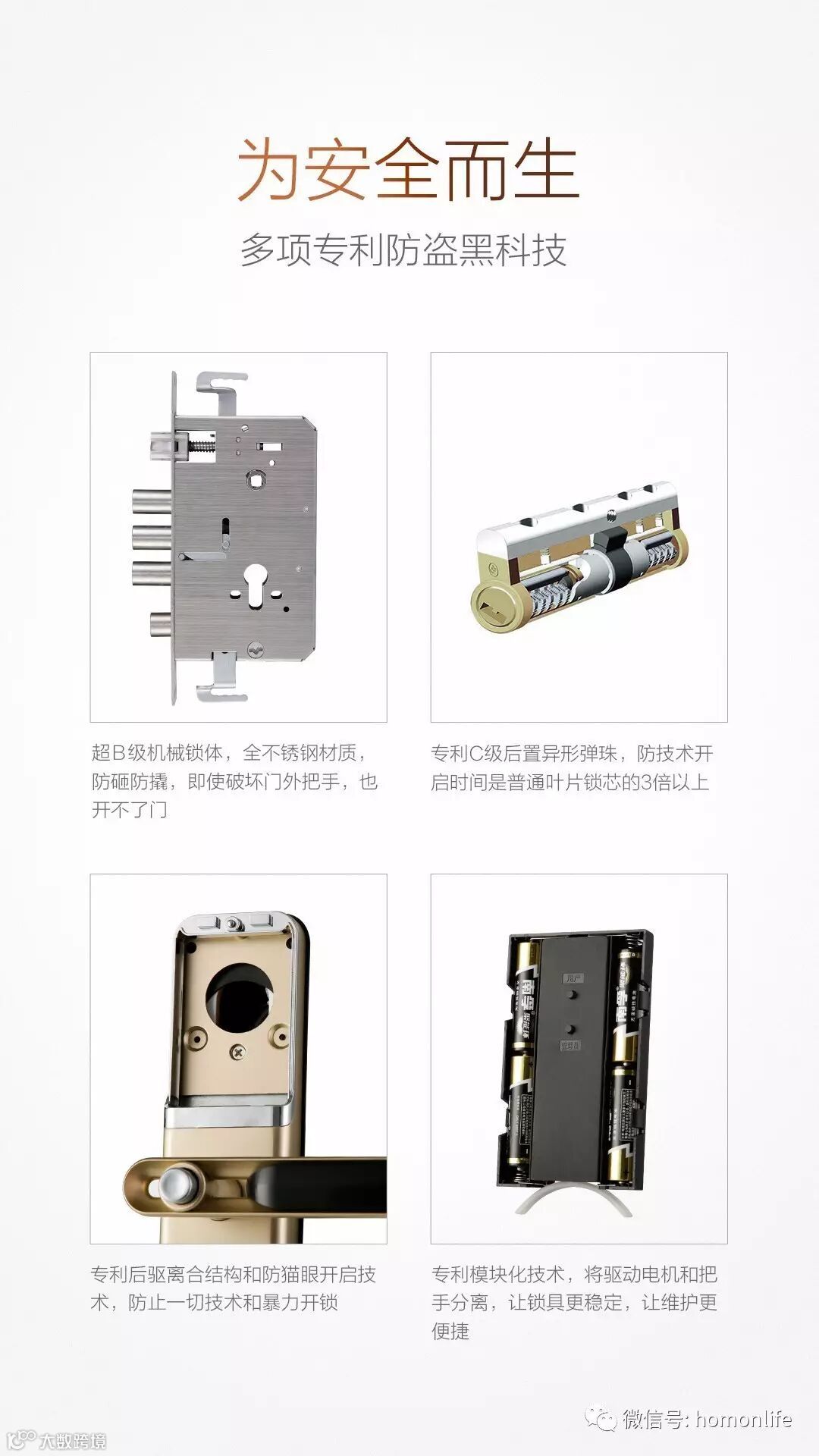 1.独有的游离把手防猫眼开启设计,杜绝猫眼开锁;