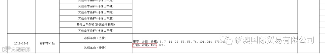 厂号为158的肉类加工厂新增对华出口冰鲜羊产品。